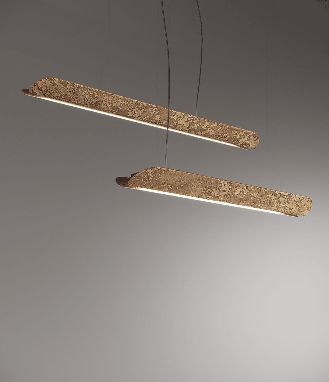Особенность конструкции — центральный разрез, который придаёт светильнику архетипичную форму ландшафта, сформированного льдом, воспроизводя его доисторическую красоту. Aare Ceiling соединяет художественный замысел и мастерство работы с металлом, превращая свет в выразительный элемент интерьера.
