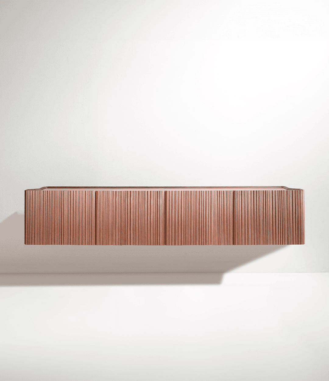 Горизонтальная композиция включает две L-образные дверцы, открывающиеся на 90° благодаря уникальной конструкции. В самой длинной версии в центре размещены два вместительных выдвижных ящика в форме корзин, каждый из которых скрывает внутри дополнительный небольшой ящик.