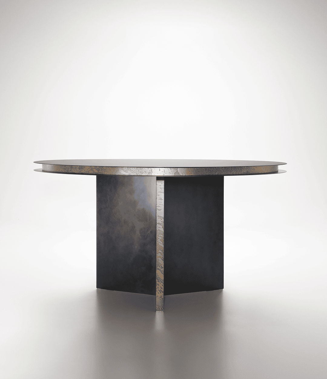 Круглый стол Folio от De Castelli – это изысканное воплощение минимализма и мастерства, где форма и функция сливаются в гармоничное целое. Этот стол – не просто предмет мебели, а настоящая композиция из плоскостей, созданных из равноудалённых металлических листов. Их расположение подчёркивает округлую форму стола, создавая завораживающую игру света и теней. Горизонтальная поверхность отражает свет, добавляя глубины и живости, которые оживляют любое пространство.