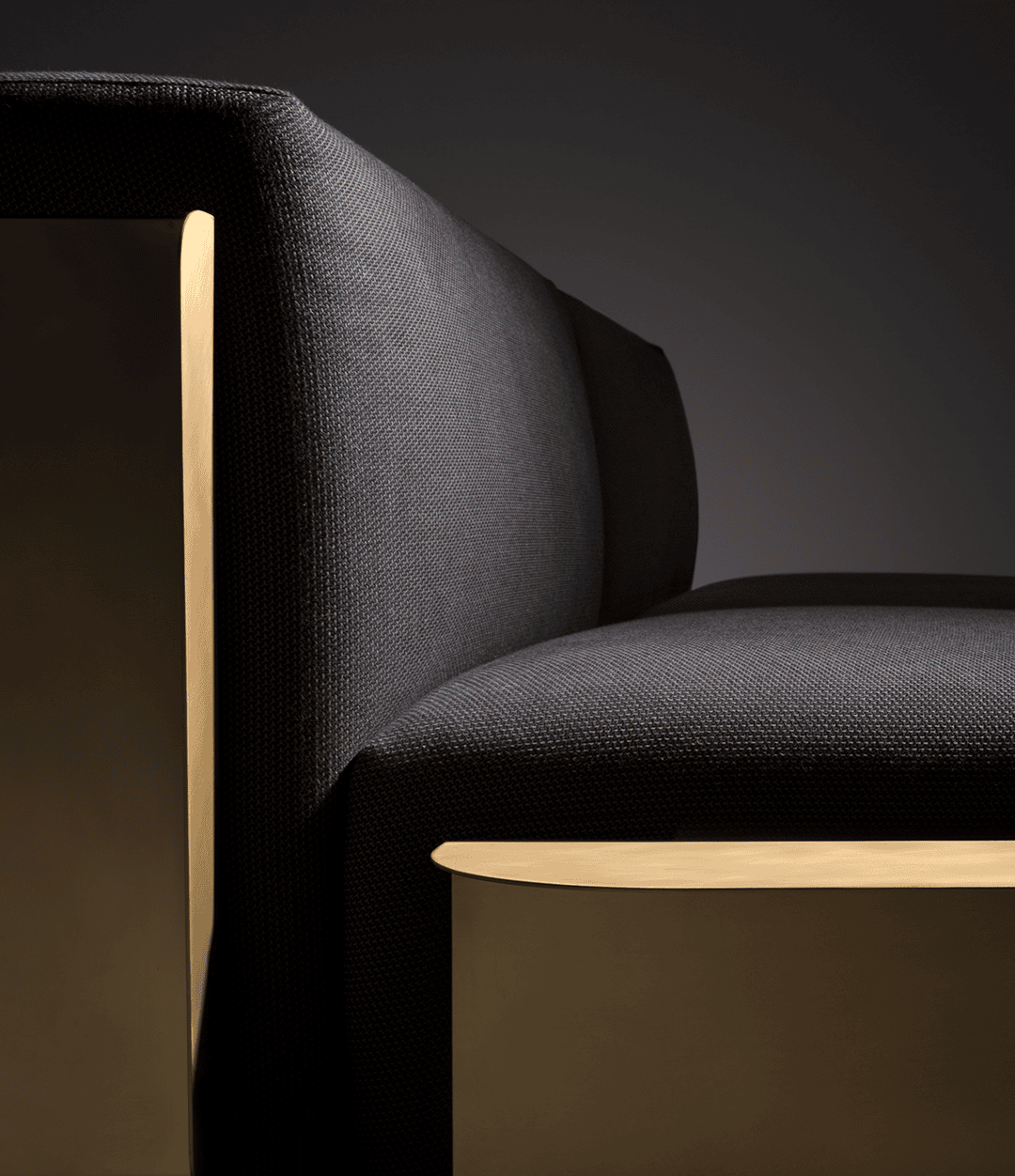 Loom от De Castelli — это коллекция мебели, которая сочетает твёрдость металла с мягким комфортом обивки. Дизайн превращает кажущийся парадокс в вдохновение: знакомая, приглашающая форма располагается на латунном основании, которое удерживает подушки и формирует очертания сиденья.