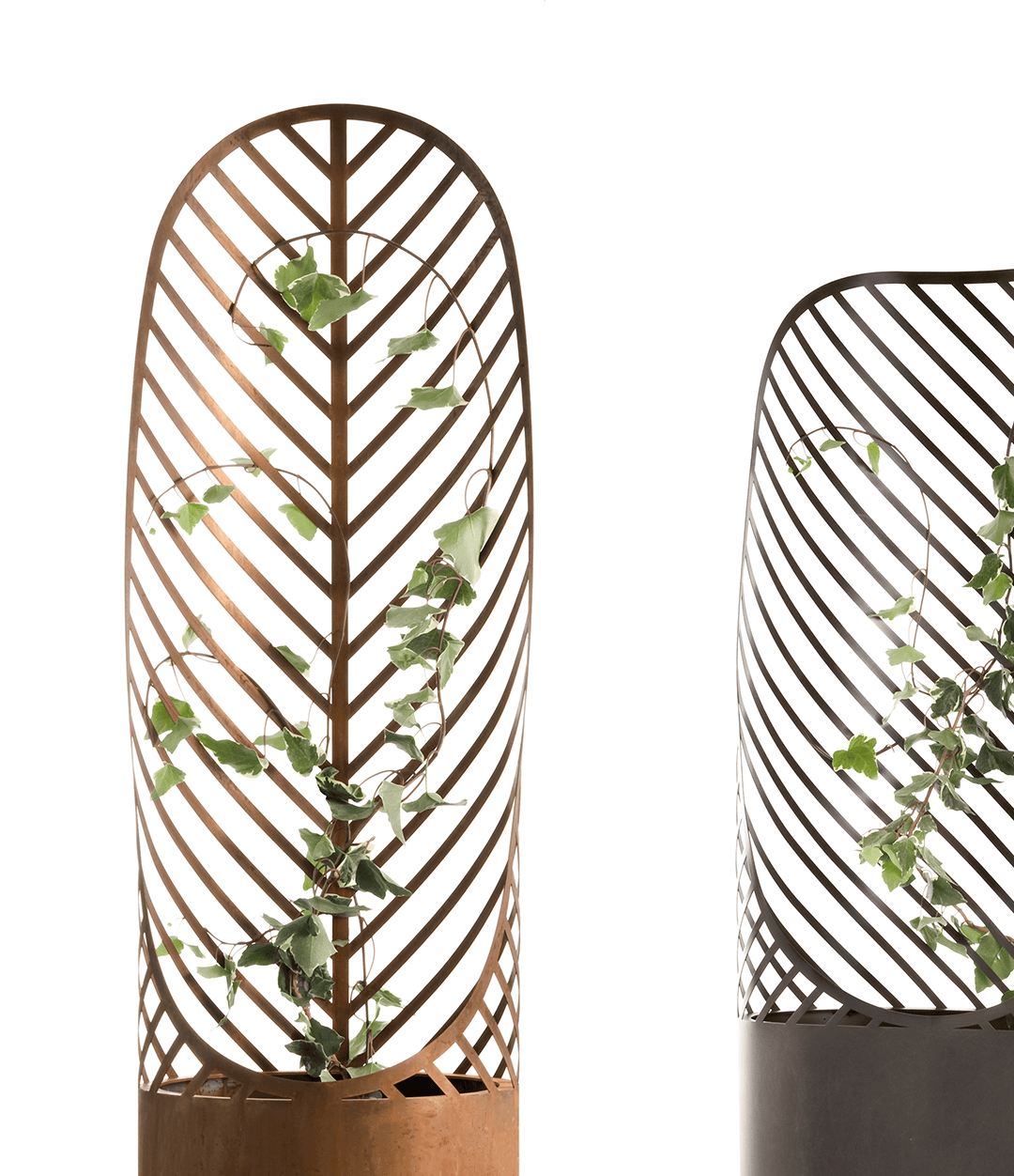 Screen-Pot от De Castelli – это современное прочтение классического цветочного горшка с решеткой для вьющихся растений. Дизайн вдохновлен природой: решетка словно лист среди листьев мягко замыкается вокруг растения, создавая для него естественную опору.