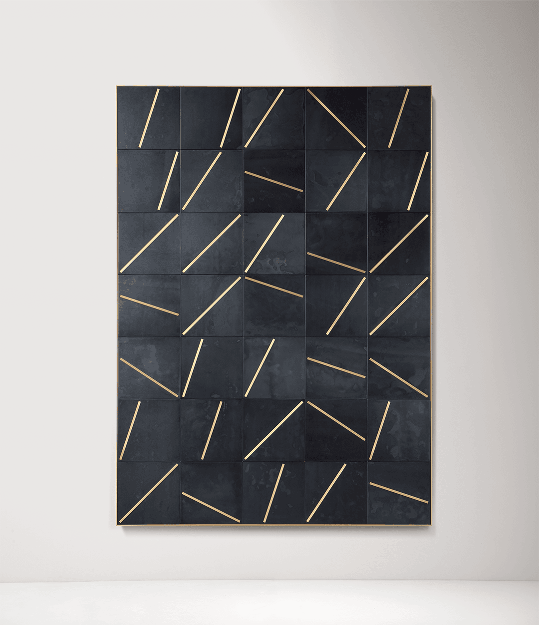 Yoko 01 состоит из декоративных квадратных плиток из нержавеющей стали DeDeep с инкрустацией из шлифованной латуни, рамка выполнена из нержавеющей стали с латунной отделкой. Эта работа входит в коллекцию DeFrames, которая переосмысливает интерьер и декоративное оформление. Металлические поверхности здесь перестают быть просто облицовкой — они превращаются в тактильные картины для стен, где графические акценты подчёркивают глубину материала и мастерство ручной обработки De Castelli, превращая каждую композицию в настоящее произведение искусства.