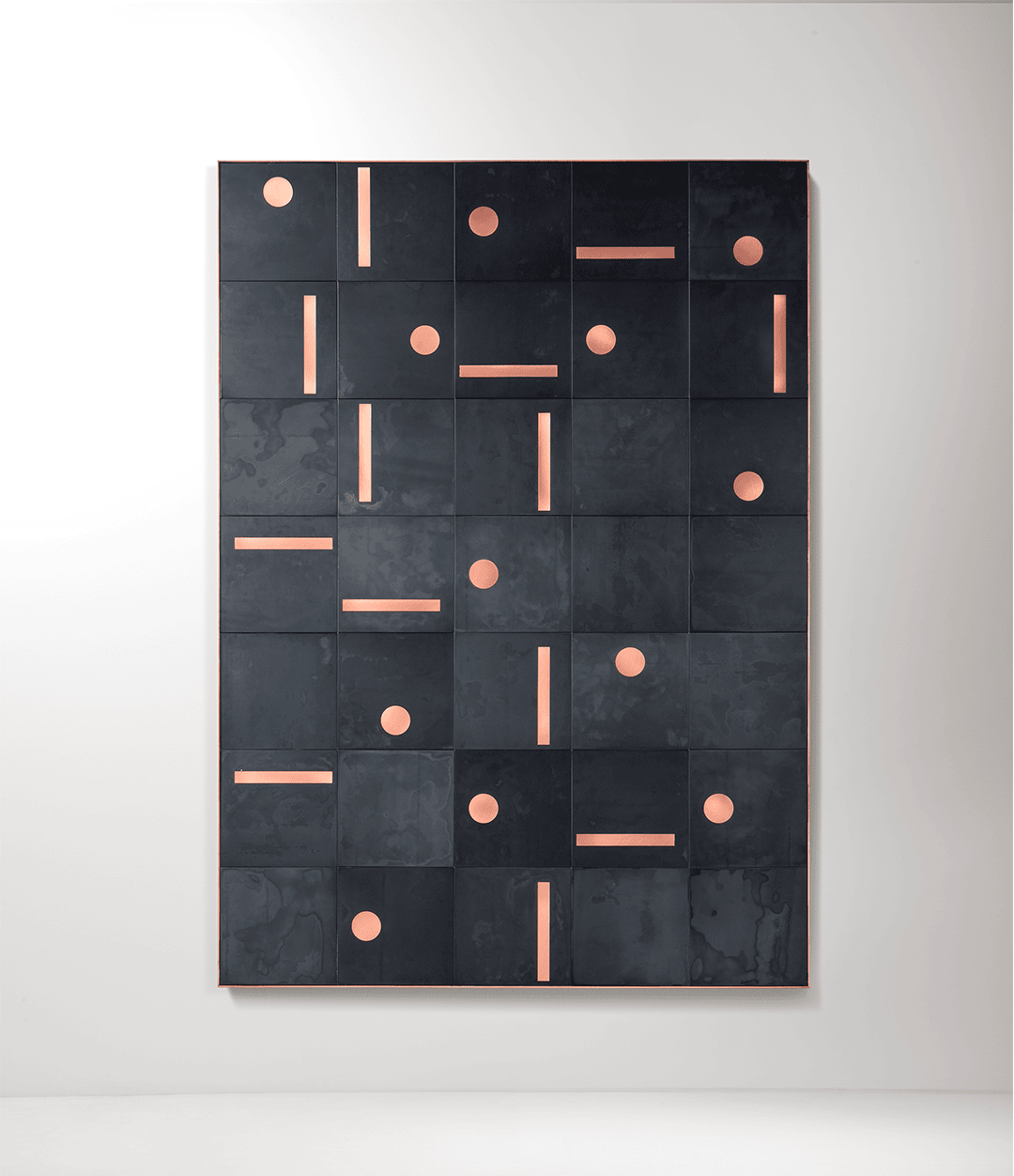 Металлические поверхности превращаются в тактильные полотна, которые можно выставлять на стенах, переосмысляя металл как материал для настоящих произведений искусства. Yoko 02 подчеркивает богатство фактуры металла и мастерство, с которым De Castelli разрабатывает и реализует изысканные декоративные решения.